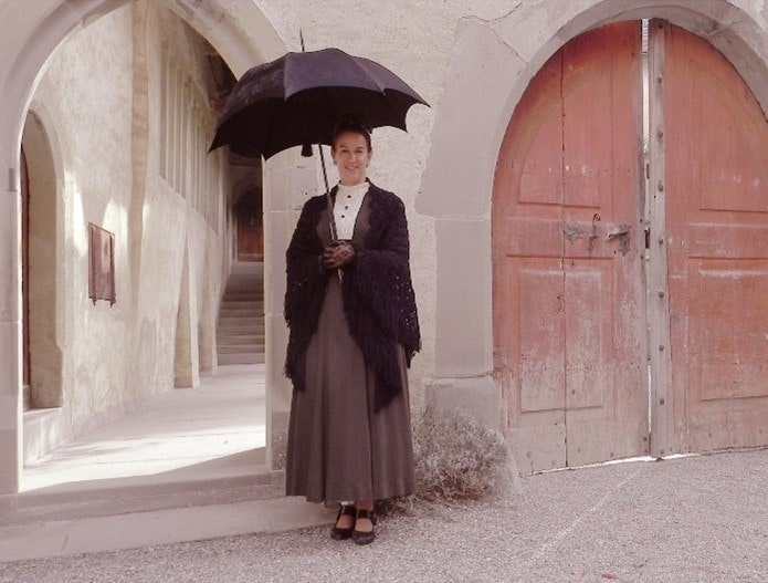 Erleben Sie Carmen Marieni Gomez ein weiteres Mal in einer szenischen Führung als Mary Ellen Vetter, einst elegante Gastgeberin im ehemaligen Kloster Sankt Georgen.
