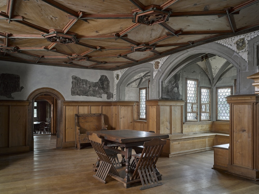 The rich furnishings of carvings and the numerous wall paintings bear witness to the prosperity and education of the last monks in Sankt Georgen. The highlight of the museum tour is the reopened banqueting hall with its wall paintings. The murals form a unique ensemble from the time around 1500. The subjects of these paintings show an interest in the ancient intellectual world.